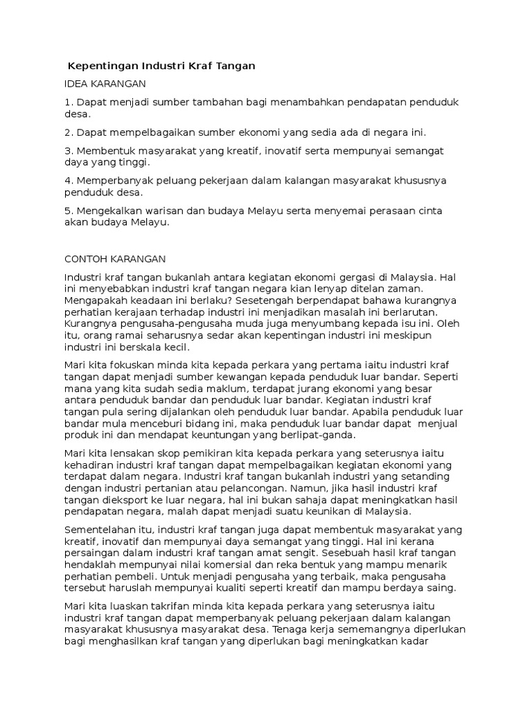 Oleh itu pelbagai langkah yang proaktif dan bersepadu perlu dilakukan supaya industri kraf tangan negara terus hidup subur sebagai lambang kebudayaan negara Malaysia. Contoh Jawapan Rumusan Terbaik. SPM - Ada fokus soalan.